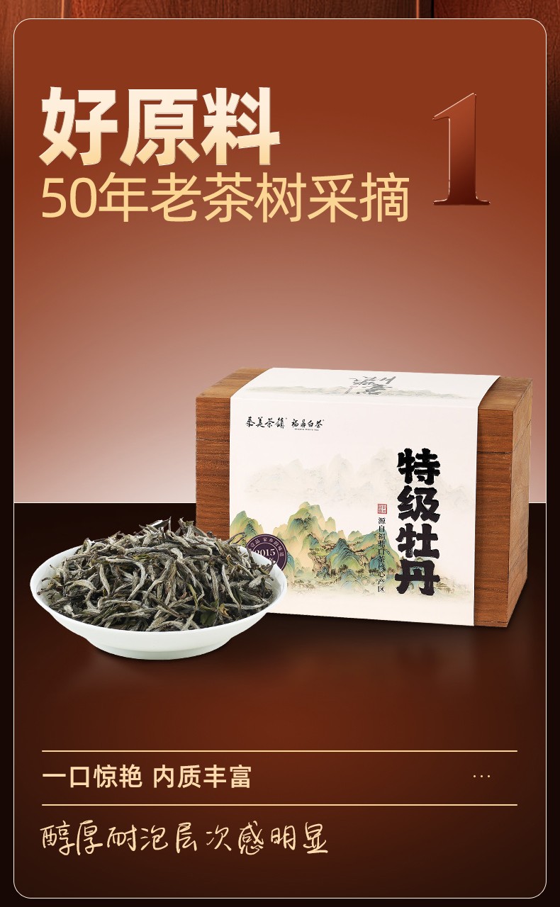 2015年特级白牡丹250g散茶木箱礼盒装